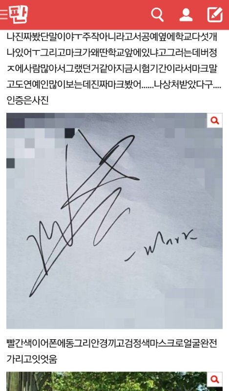 댓글로 사생 아니라고 엔시팬도 아니고 그냥 연예인 만나서 신나서 올려준 거라고 하는데 이거 보면 마크 만난 거 한 두번 아닌가봐? ㅋㅋㅋㅋㅋㅋ 머리 덥수룩 하다고 말 하니까 오자 쓰고 온 것 같다궁?ㅋㅋㅋㅋㅋ 개웃기다 몇번이나 죽치고 있다가 만난 거야 계속 그냥 만난 거라고 하는데 내일도 기다릴 거라는 댓글을 봐서는 절대 그냥 만난 게 아님 ㅋㅋㅋㅋ