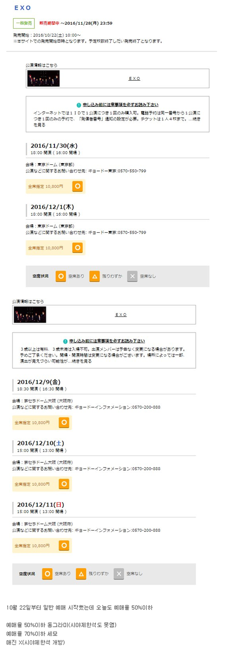 엑소 도쿄돔 양이틀 모두 예매창부터 50프로도 안팔리고 텅텅