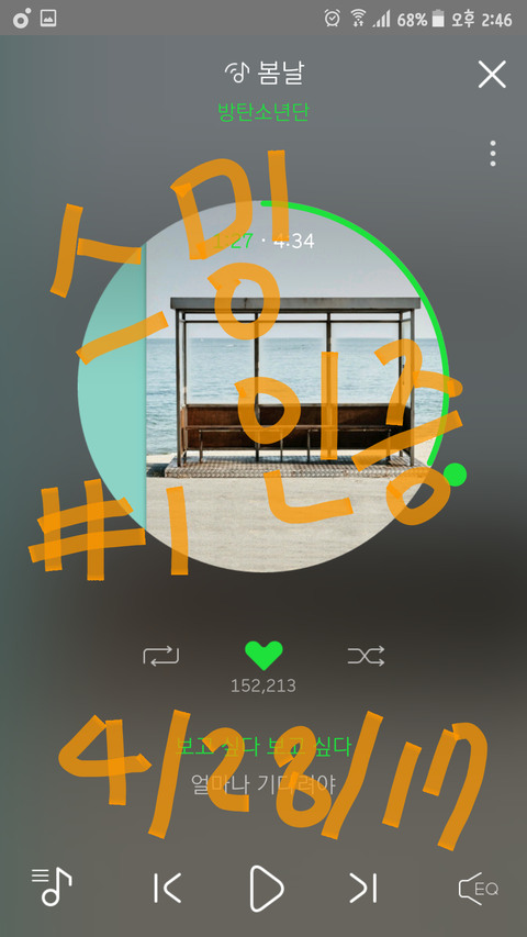 맨날 아미들 스밍하는데 나만 안해서 미안하고 죄책감들고 그랬는데 활동기에 스밍 못해준거 정말 미안하지만 앞으로 더더 연말까지 열심히할께!! 너무 기분좋당 헤헤