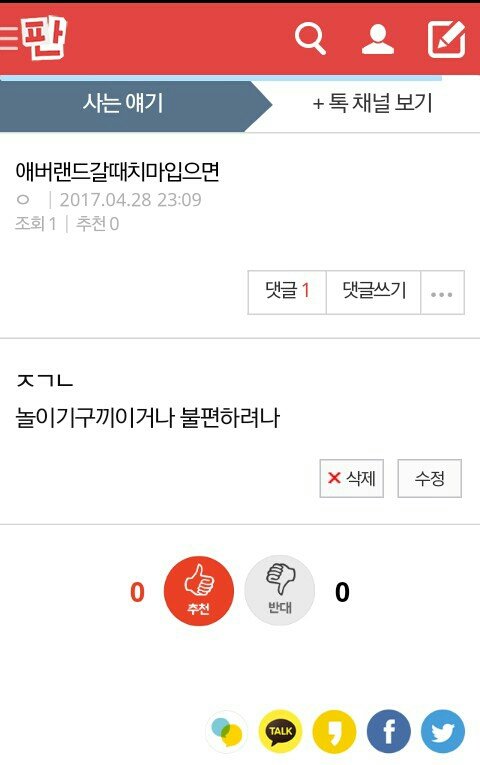 제발 익명이라고 말 ㅈ같이 하지 말자 남들도 기분이 있고 감정이 있는데 본인은 얼마나 예쁘고 아름다우시기에 저런말을 하는지 도통 모르겠,,^^