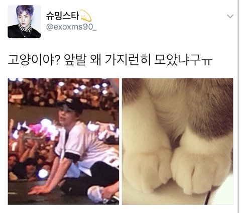 어제 민석이의 섹시 고양이 포즈짤이 뜨고 난 후 온 트윗은 흥분한 시우민팬들로 들썩이게 되는데......