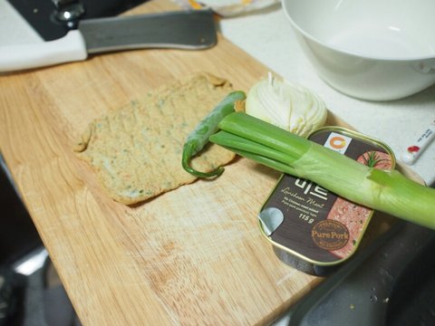 재료는 무엇이든 다 좋아요. 냉장고에 있는 거 막 가져다 씁니다., 오뎅, 햄, 파, 양파, 청양고추 등 냉장고에 있는거는 뭐든.