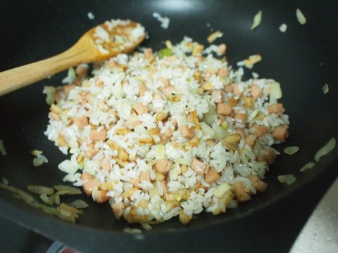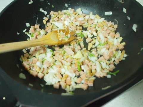 파 마늘 조금 볶아주다가 오뎅 햄 볶다가 양파 청양고추 넣고 볶볶, 소금후추 간.