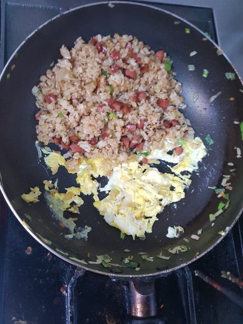 밥과 굴소스.청양고추가루 아주약간 넣어용