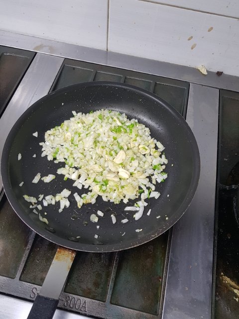 올리브유에 양파 마늘 청양고추 후추 소금 넣고 볶아요