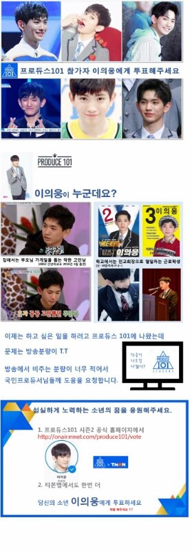 나 위에화 이의웅 뽑는데.. 11위권이었고 자기소개PR영상도 조회수 꽤 높고 인지도 많았다고 생각했는데ㅠㅠ
