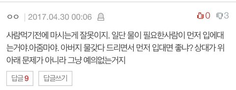 오늘 저녁에 먹다 뜬금없이 물한잔때문에 남편이랑 개끌듯이 싸우고