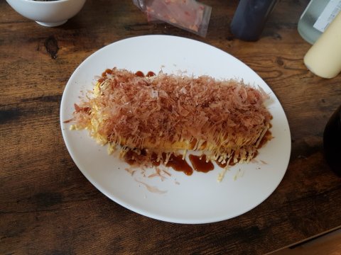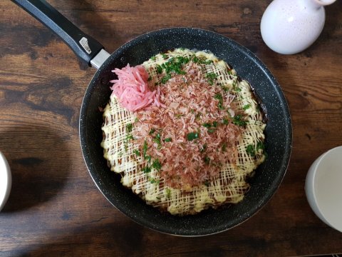 간단한 오꼬노미야끼. 철판이없는관계로 대충 후라이팬에다 먹음ㅠ