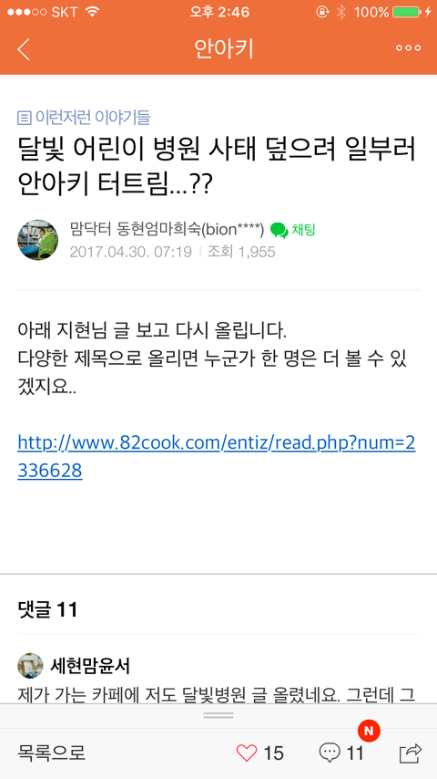 댓글 많은 톡