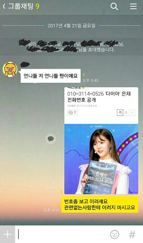 최근? 다이아 라는 그룹이 전화번호 공개를 했는데요