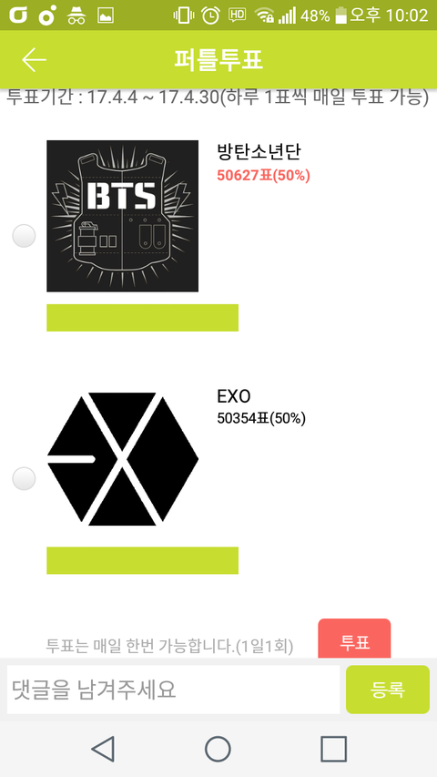 300표 차이에 깔고 밑에 투표 라고 써진 동그라미 누으면 돼