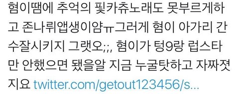 가입안한사람 까고 지금 퉥플한테 내부에서만 하는거 아니라고 멘션쏘는계정에 ㅈㄹ하는년이 이따구로 틧올리고있음