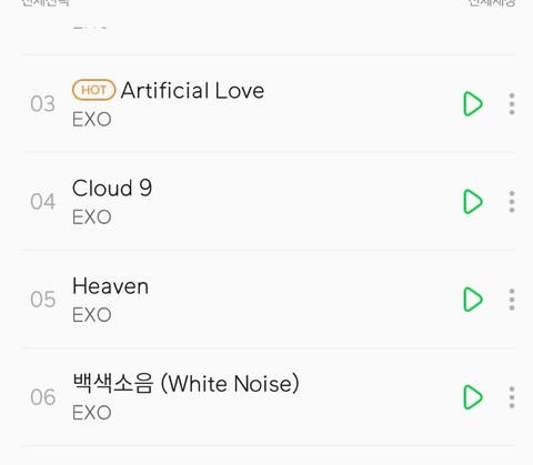 그리고 엑소 정규 3집 EX'ACT 4번 트랙 Cloud 9의 바로 다음 트랙인 5번 트랙의 제목은 Heaven