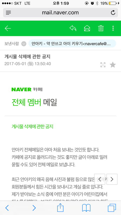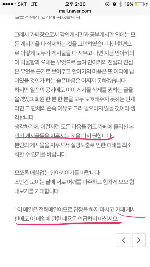 증거인멸 들어가네요. 게시글 다 삭제하시고 카페게시판에 이 메일에대한 언급은 하지말라네요