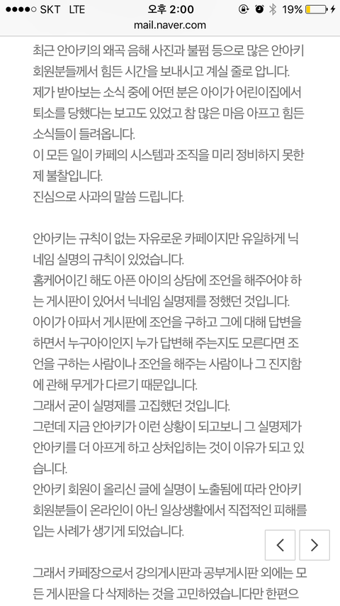(안아키) 게시물 다 삭제하라는 안아키 카페장
