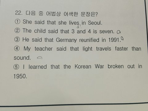 답이 5번인데 broken이 broke로 가야되는 건 알겠는데 1번은 왜 맞는 문장이야? lived 아닌가?