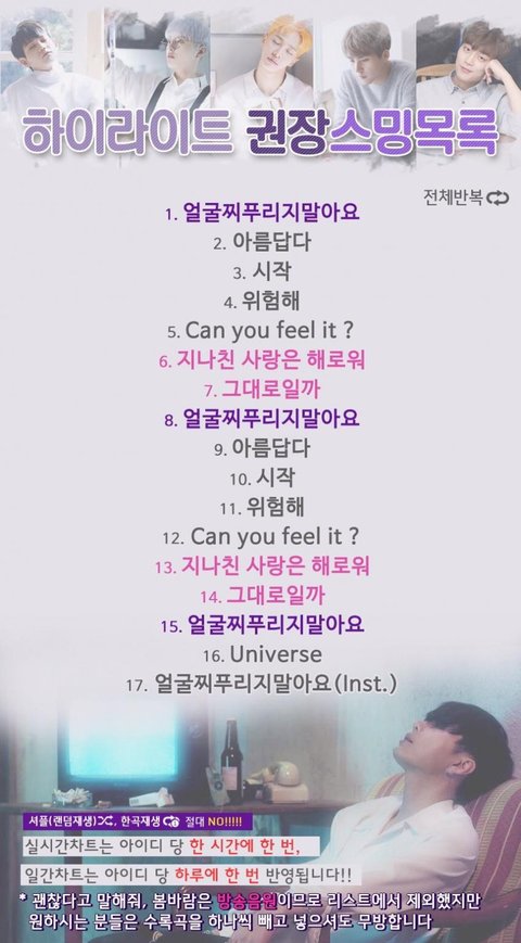 새 권장스밍목록 가지고 왔어 내일 곡 나오면 밑에처럼 돌려야함!!
