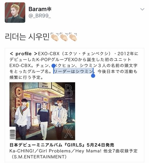 원래부터 리더인데 민석이 원래 감투 별로 안좋아해서 지금까지 그랫던거아니야? 굳이 자기를 첸백시의 매니저 라고 지칭한거보고 아 원래 리더는 민석이였구나ㅋㅋ싶었는데... 가위바위보로 정한다기엔 너무 자주 민석이가 리더였던 것도 그렇고..