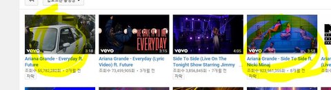 ari아나 ~ - every2day 는 신곡이라 아직 조회수는 미미해.. / si5de to si5de 9억 2천만뷰