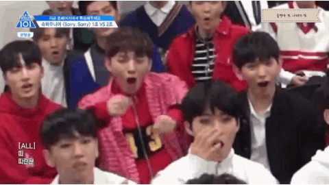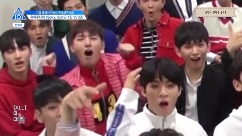 그라고 타 연습생들ㅋㅋㅋㅋㅋ이건 웬만한 팬들은 알 짤ㅋㅋㅋ보면 윤지성은 다니엘 빙의,앞 쪽에 있는 연습생들은 손가락 돌린 거 따라하고 있음 다른 연습생들은 '○'입을 다물지 못하고...