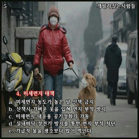 미세먼지 심한 날 반려견도 외출 안돼요.
