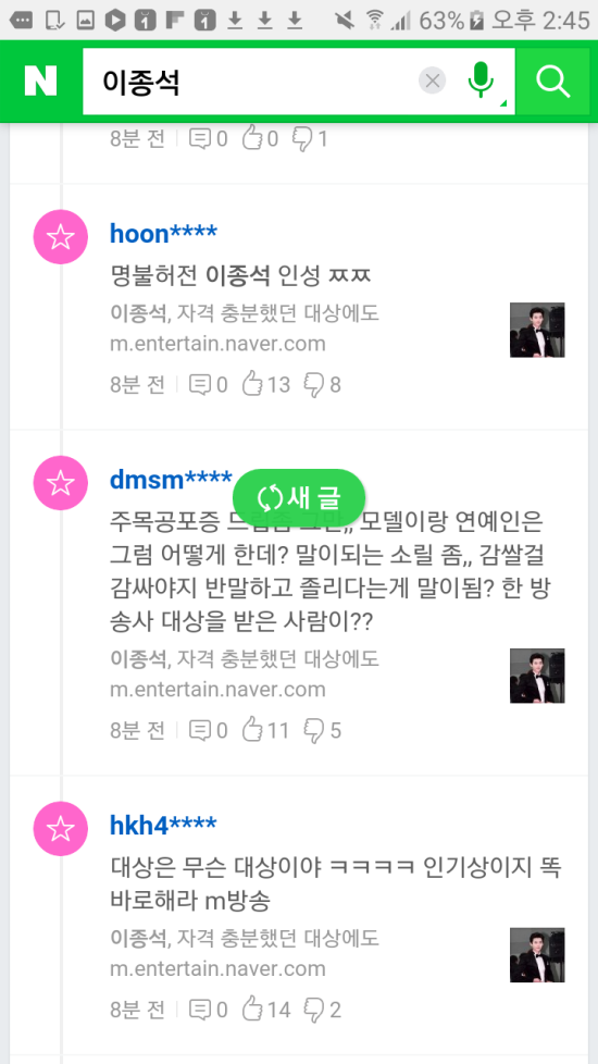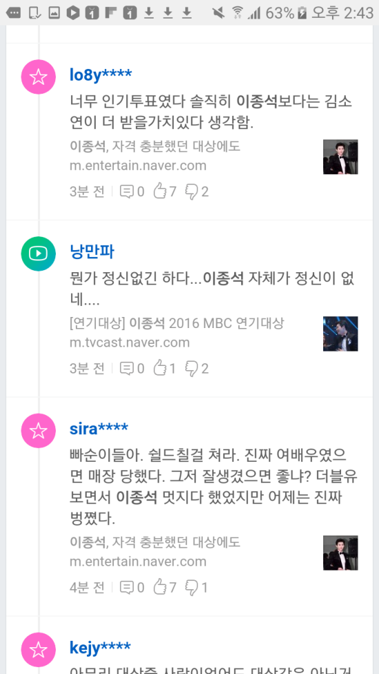 이렇게 가루가 되도록 까인 이종석에 대해선 아무도 언급하지 않는다. '그건 여적여지만 이건 남적남이 아니다' 라는 건지..