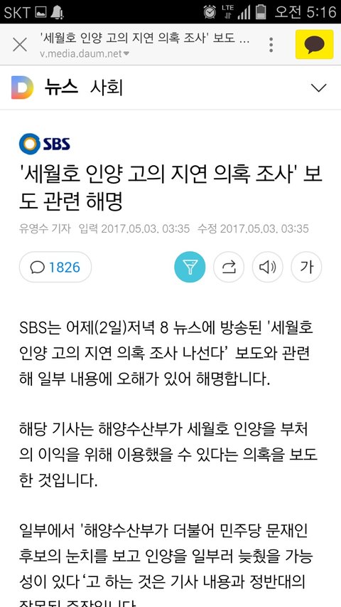 오늘이 휴일이라 그런지 잠이 하도 안와서 카톡뉴스 뒤적거리고 있는데 SBS해명이라는 검색어가 떠서 화들짝 놀라 기사를 봤습니다