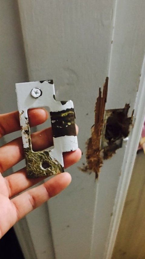 5/1일 제가 일을 나가고 엄마와 아빠 집에 둘이 있을때 아빠의 폭행과 폭언이 지속될수 있으니 엄마에게 문을 잠그고 제방에 있으라고 하였습니다. 아니나 다를까 문을 발로 차고 문고리와 연결된 부분을 드라이버로 파내 결국 문을 따고 들어와 폭언을 시작하였습니다. 아래의 사진입니다.