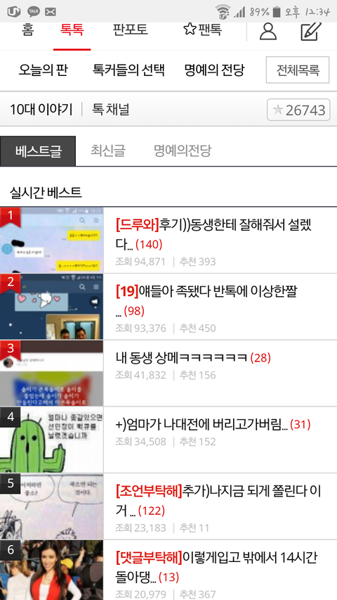 미친 판에 글 처음쓰는데 톡선 갔어 톡선첨이야