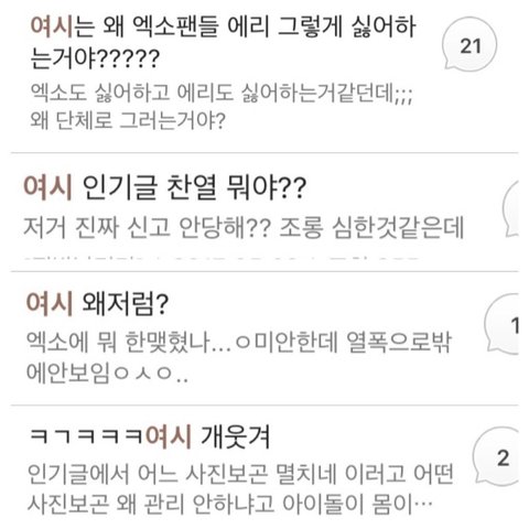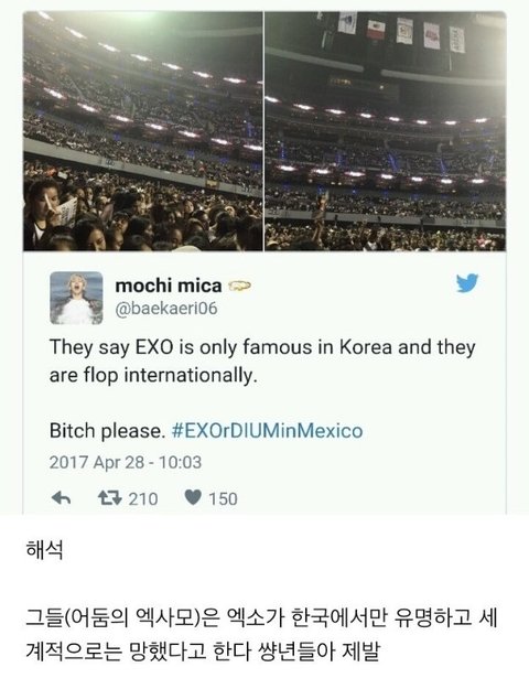 엑소 북미투어 텅텅콘이다 등등 사실관계를 전혀 파악하지않은 악의적인 내용으로 조롱하는 글이 인기글에 오름