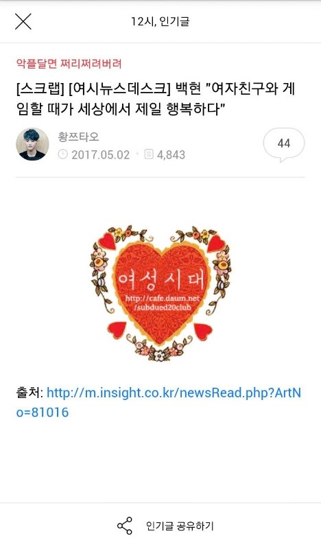 자극적인 제목으로 어제 새벽 인기글 1위에 올라온 글
