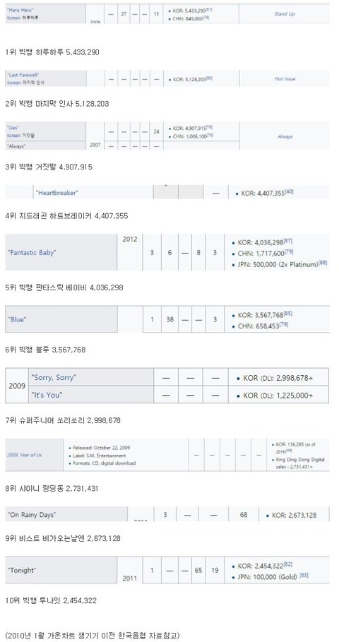 미친놈아 감히 하루하루를....빅뱅히트곡 탑3안에드는곡임 척보면 느낌안오냐??30주연속 탑10이었음...1년넘도록 차트인 0809그때히트곡 주문 지 어게인어게인 유고걸 베이비원모어타임 같은곡들이었던것알지? 저기서 살아남은게 하루하룬데 뭐라고...??