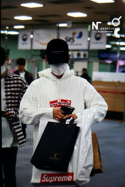 백현이 뭔가 많이 들고 입국~!