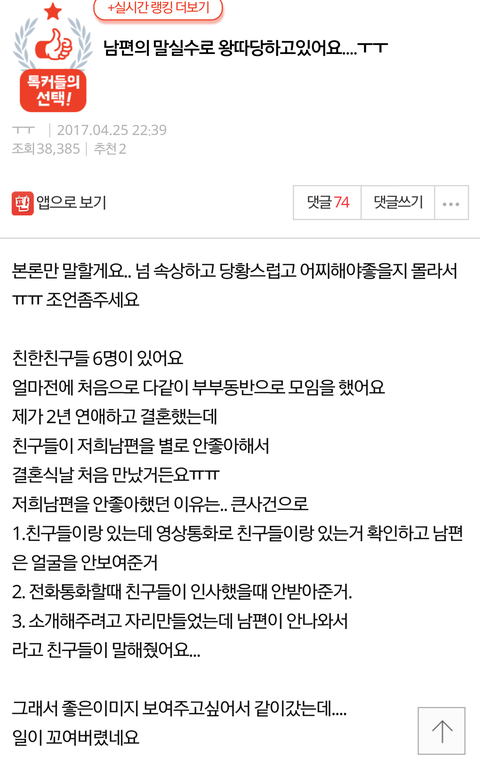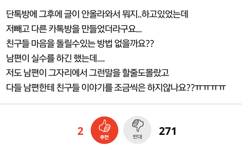 (원본지킴이)남편의 말실수로 왕따당하고있어요....ㅜㅜ