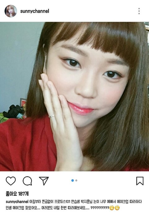 +유선 톡선고마웜! 어제 프듀 스패셜 어쩌구? 하는 거 보고 따라해봉건데 폭망이라한건 진짜 그렇게 생각해서 적은거야 닮았다고는 생각안해봤고 닮았다 해줘서 고마워! 친구들한테 누구화장했게 라고 물어봐서 박지훈이라고 대답한애가 한명도 없었거든 너희도 박지훈이라 말하지않았다면 모르지 않았을까? 여튼 난 칭찬받고싶ㅇ서 폭망이라 한것두아니고 그래서 올린게아니라 그냥 화장한게 아까워서 올린거야ㅜ 그리고 화장은 그냥 박지훈 사진보고 했어! 눈꼬리 어떻게 올리냐고 하는데 섀도우로 그냥 빼줘.. 또! 나도 무쌍이얌 저건 쌍테 붙인거니까 너희들도 한번 쌍테 붙이고 해봐! 욕하면 상처받으니까 심한욕은 하지 말아주쎄용 부탁이야 그럼 안녕 뿅!