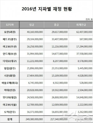 또, 총회본부의 2016년 재정수입은 약 2백 60억 원, 지출은 40억 원이라고 공개하고, 회계 잔금이 7백 30억 원이 있다고 보고했다.