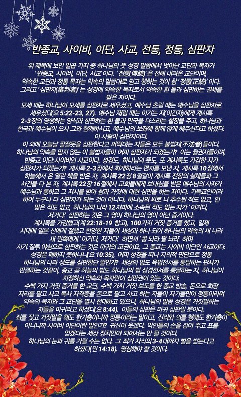 반종교, 사이비, 이단, 전통, 정통, 심판자