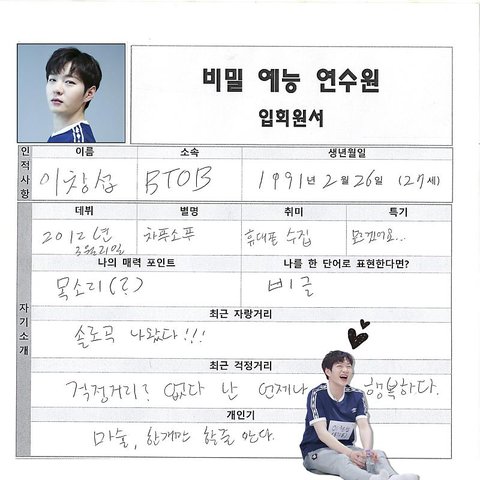 창섭 성재 ㅂㅁㅇㄴㅇㅅㅇ 입회원서