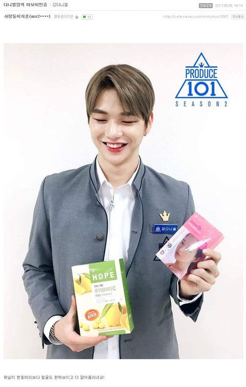 판 시끄러운 와중에 박지훈 팬카페에 강다니엘 마보이글이 올라옴