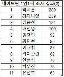순위는 변화없고 투표수만 조금 차이남