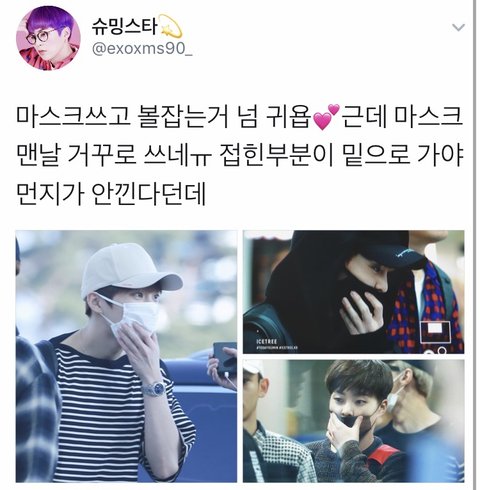 시우민 마스크 거꾸로 쓴거였어??