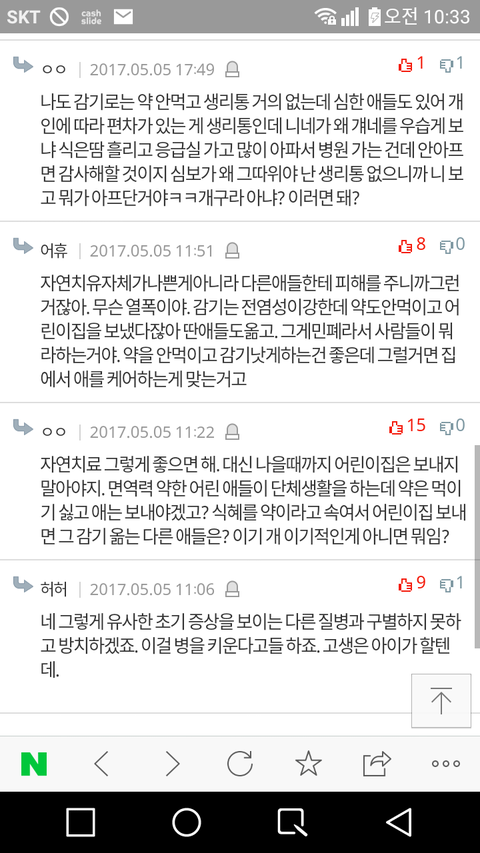 아니고 독감걸리는애들은 약만잘먹고 학교일주일씩빠지던데 운동이나하시고 말하세요 난 안아키때문에 글쓴게아니라 님들오바떠는거에 감탄받아서 욕하려고 쓴거임 무슨 안아키한다고 카페망하게하고 전국민이욕하는게 이해가안된다 오지랖만넓은거지