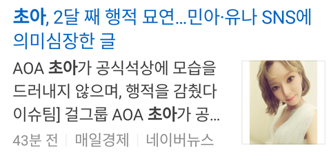 헐 애들아 초아 2달째 행방묘연이래...;;