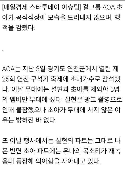 뭔일이지??? 회사하고뭔일있나봐 익스큐즈미때까진 있었잖아... 초아파트도 유나가재녹음했대 ㄷㄷ