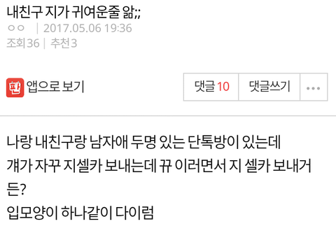 직접말하지 왜 판에서 이러는지 모르겠음 개찌질하고 열폭하는거 같음
