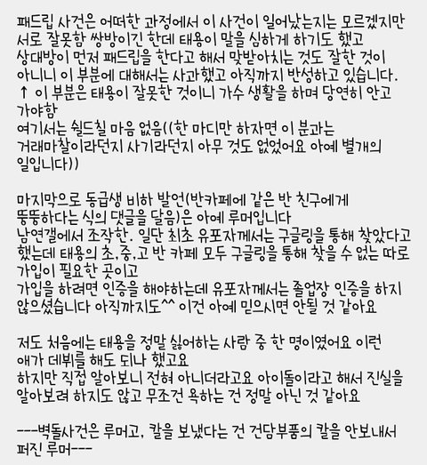 태용팬들이 패드립했다고 우기는 상대방이 보낸 쪽지