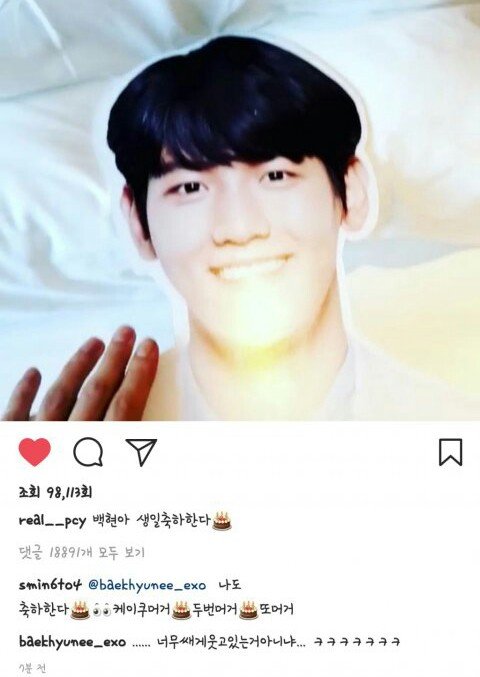 찬열 생축 인별 백현이 댓글 ㅋㅋ