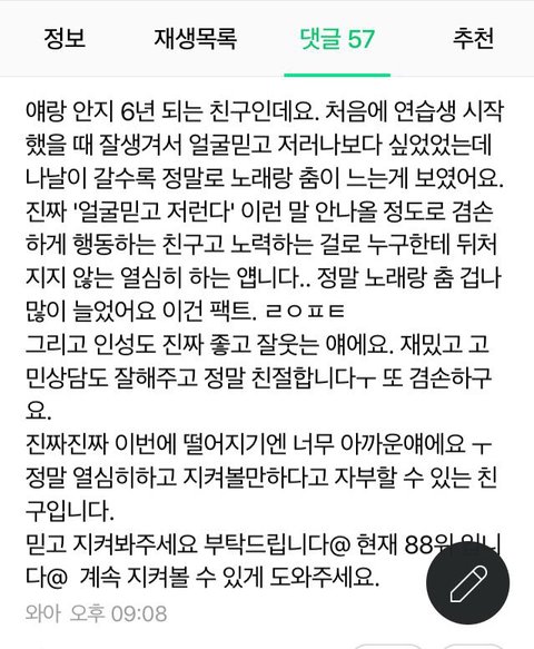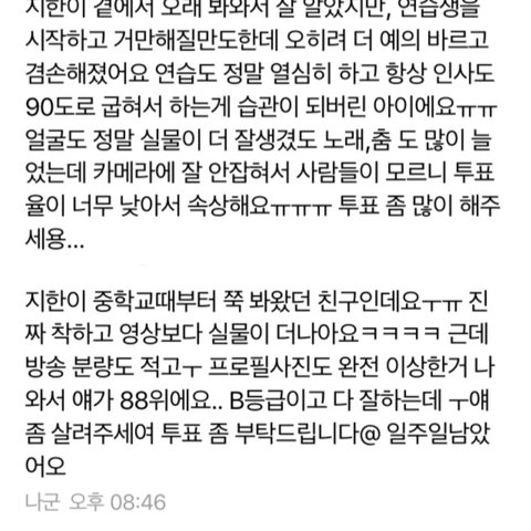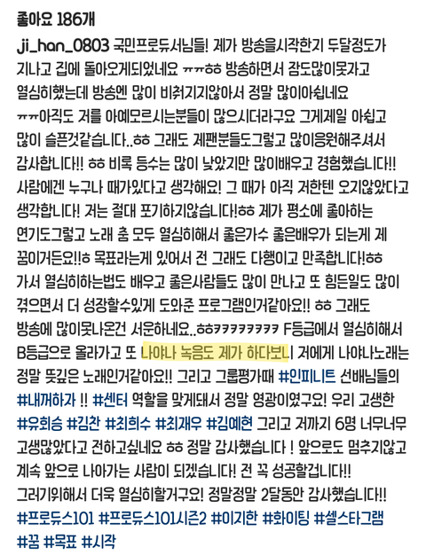 98위 이지한... 꼴등한 연습생인데ㅜㅜ