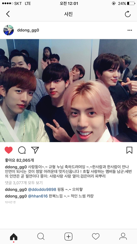 같은 멤버 누나 결혼식이라고 한복까지 입고 다같이 축하하는 거 진짜 멋있지 않나뇨....?