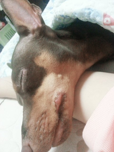 종은 미니핀이고 희귀 갈색이야 그리고 곧 태어난지 2년 되는 애기!